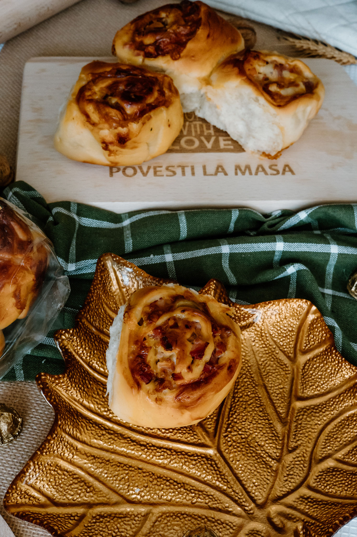 Cozonacul Familiei Sărat – o delicatesă unică ce îmbină tradiția cu savoarea. Spre deosebire de clasicul cozonac dulce, acesta este umplut cu ingrediente sărate, precum cașcaval, șuncă și măsline, oferindu-i o aromă distinctă și un gust bogat. Aluatul pufos și umplutură generoasă îl fac nelipsit de la sărbători și mesele în familie.